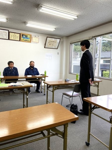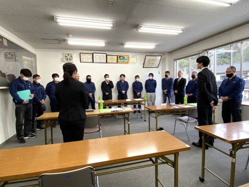社長の挨拶から始まり、その後は新入社員の2名に自己紹介をしていただきました。
